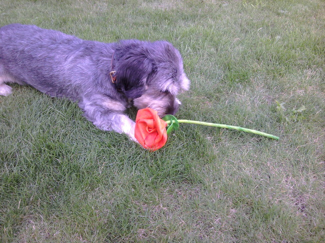 Honden foto's > boris > boris heeft een mooie roos gehad