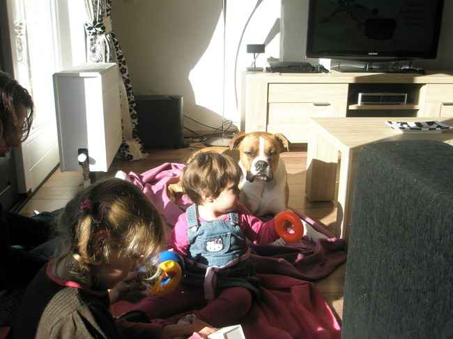 Honden foto's > Angelique > Als mn nichtjes spelen, let Sem goed op ze.