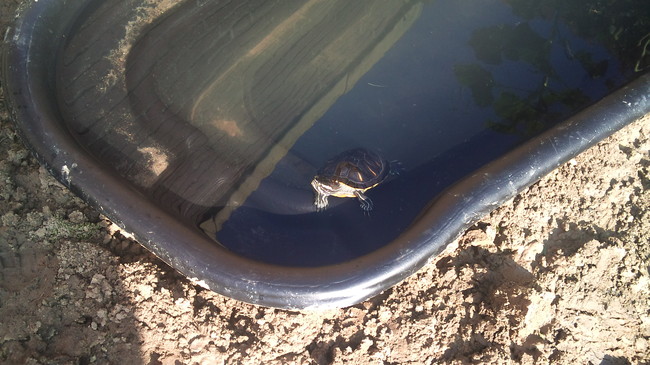 Honden foto's > Floor en Fiefie > theo in zijn nieuwe vijver...