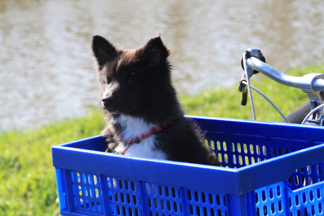 Honden foto's > Marcella > voor in de fiets mand