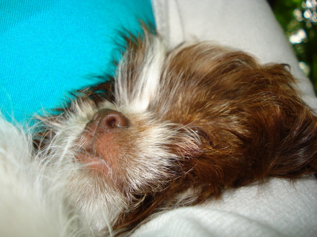 Honden foto's > Bentley > Wat lig ik toch weer lekker in de armen van mijn baasinnetje.
