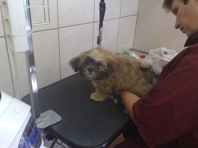 Honden foto's > linda > max z'n eerste puppy beurt bij de trimmer