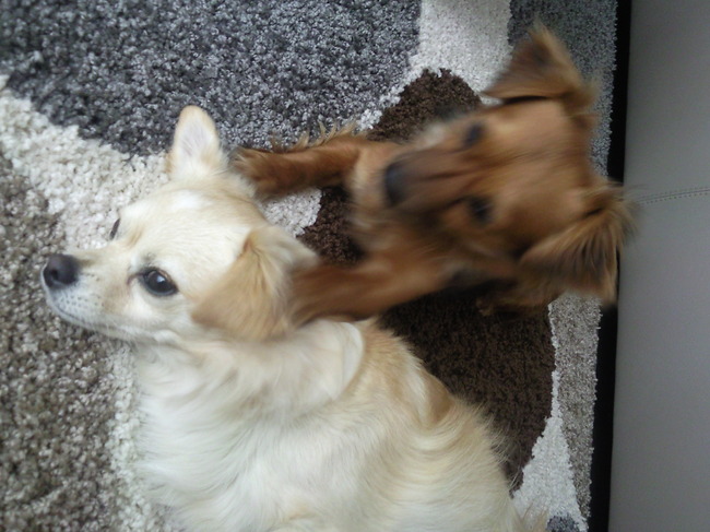 Lekker loungen op de mat in de woonkamer. van Leonarda van Cooper Misty Crispin.