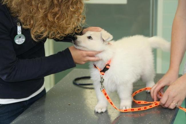 Honden foto's > Demi en Gerard > Eerste kennismaking op 6e week DA. Nu nog vriendjes.