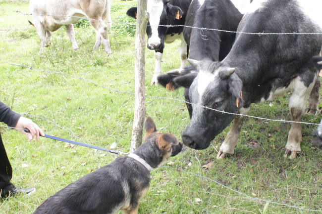 Honden foto's > Valeria Antico > natuurlijk ook neusje neusje met de koeien