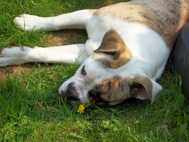 Honden foto's > karin > onze diesel aan het genieten van de zon