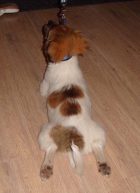 Honden foto's > Toby > Toby in staking ! Ik wil niet gaan lopen !