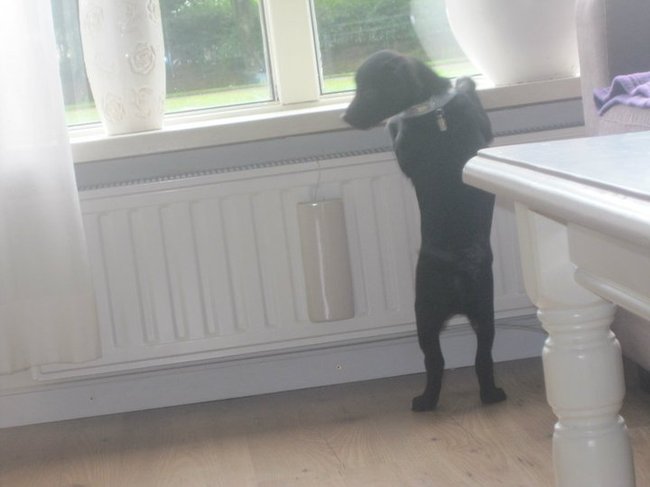 Honden foto's > Mirjam & Liz > Alleen nog geraniums voor de ramen ;) 10 weken oud.