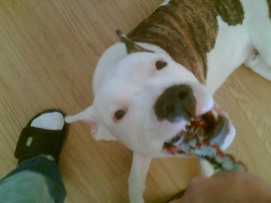 Honden foto's > May > Touwtje trekken met de grote baas