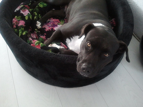 Honden foto's > Loes > helemaal gelukkig met haar nieuwe mand