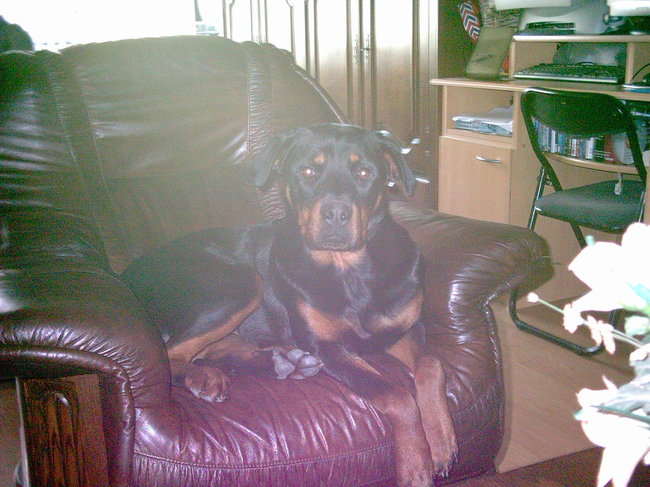 Honden foto's > Anja > Als de man van huis is gaat niemand in zijn stoel zitten