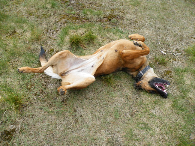 Honden foto's > De Mecheltjes clan > Blitz kan zo genieten van het rollen