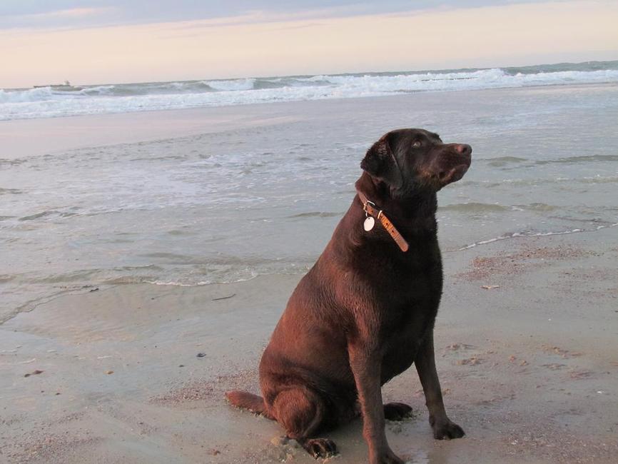 Honden foto's > Fenna > lekker aan het strand, klaar om een bal te vangen