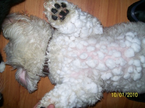Honden foto's > Bernadet- Dhani-Shasta. > Dhani na een wandeling in de sneeuw! Aahh arme hond!