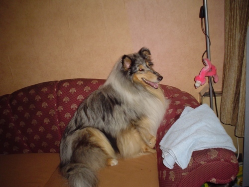 Honden foto's > Lassie,Mika & Casper > ik zit hier heel lief maar ik was toen bang voor onweer