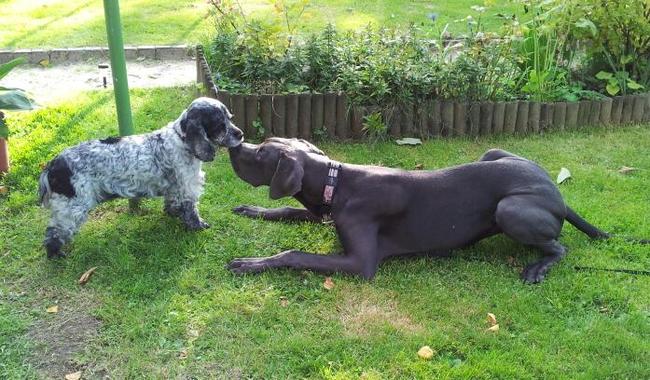 Honden foto's > Karina > Waarom wil die kleine niet met mij spelen?