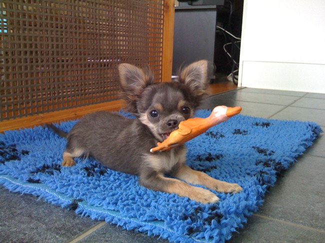 > Che is mijn nieuwe buddy een chihuahua van nu 4,5 maanden jong, van de kennel st.chihus.Na bijna 1 jaar na het sterven van mijn jack russel (totto) 13 Jaar en 1 maand geworden, wilde ik geen hond meer, omdat het afscheid zo ontzettend pijn doet, telkens weer, ik miste hem zo erg, dat nu pas terug een plaatsje is vrijgekomen in mijn hart om een nieuwe vriend toe te laten, en langzaam groeit ook de vriendschap en hechte band tussen Che en mij.