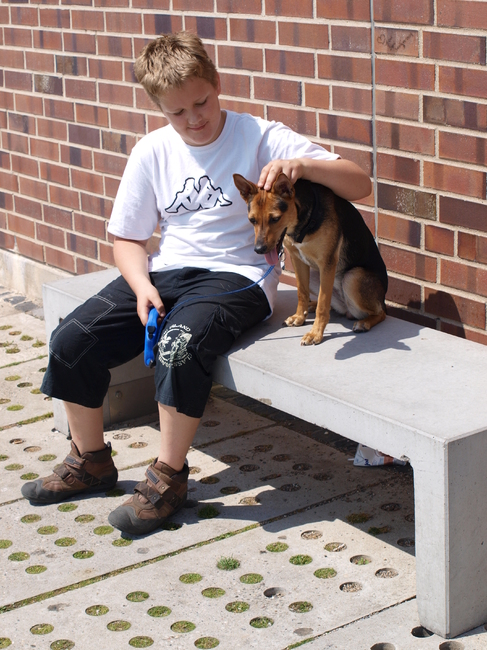Honden foto's > Willi & Loekie > Samen met onze jongste zoon in Emmerich op het bankje