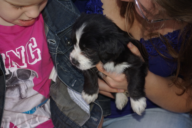 Honden foto's > Elsbeth en Moke > eerste ontmoeting met Gersom ons oudste zoontje:)