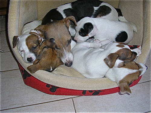 Honden foto's > lisa & sam > Sam's broertjes,zusjes en zijn moeder