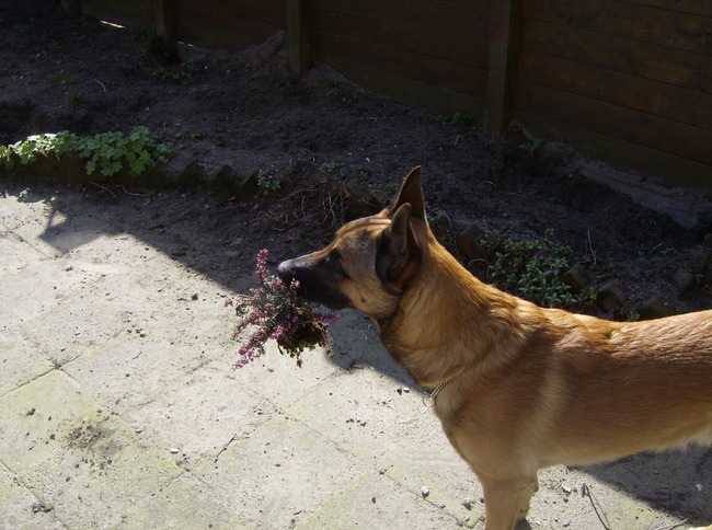 Honden foto's > Johan Kippers > hij kan de plantjes niet laten staan