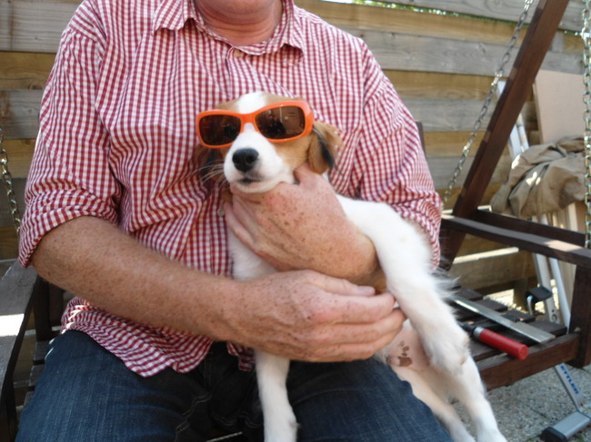 Honden foto's > Edwin & Jan & Dooby > Zie ik er niet cool uit met mijn nieuwe zonnebril ?
