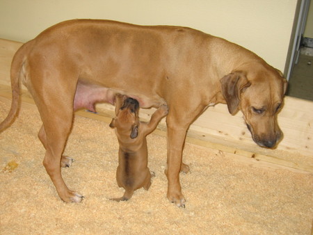 Honden foto's > christophe watteyn > niets gaat boven moedermelk,kijk eens naar mijn mooie ridge...leuk hé