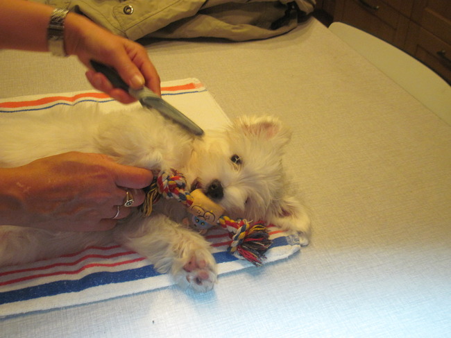 Honden foto's > Godelieve > mama maakt mij weer mooi !