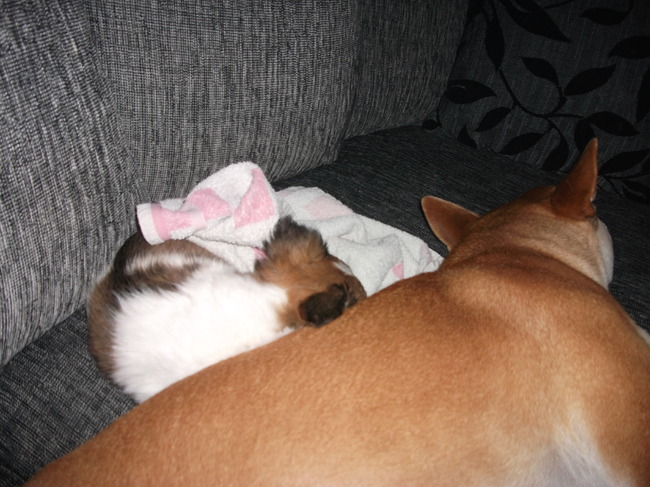 Honden foto's > Binky en Loena > lekker samen met binky op de bank slapen...:D