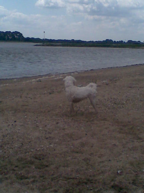 Honden foto's > Joyce, Kaily&Zoëy > Kaily aan de waal, lekker rennen en zwemmen