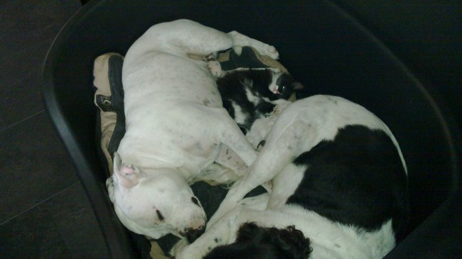 Honden foto's > Nancy, Luke en Harry > Samen met Guusje in de mand