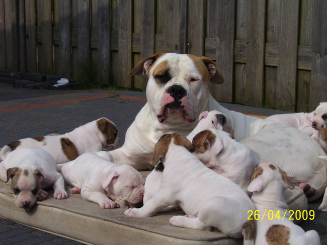 Honden foto's > Jessica > Papa met zijn kroost aan het zonnen in de tuin