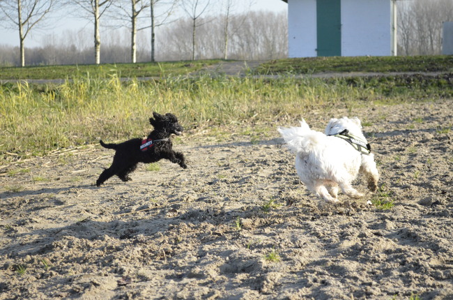 Honden foto's > corrie en haar roedeltje van zes > Heerlijk rennen met onze andere hond. Billy_Boy is inmiddels 18 weken oud.
