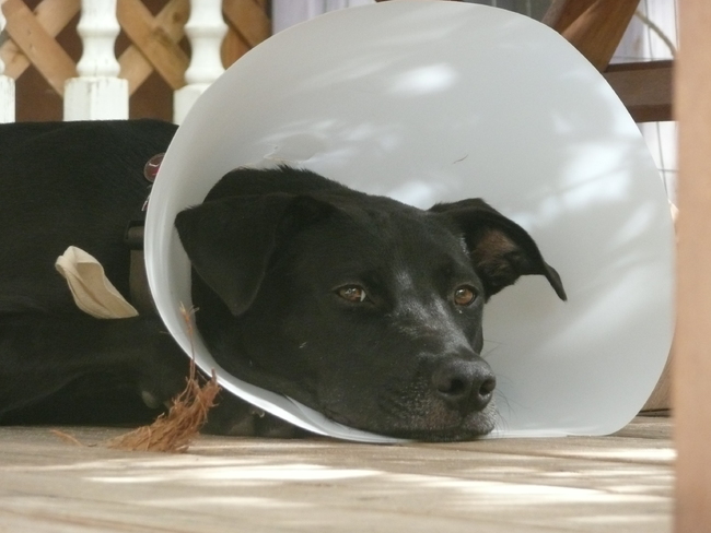 Honden foto's > nancy > Mooie hoed heeh! Hier ben ik pas gesteriliseerd...