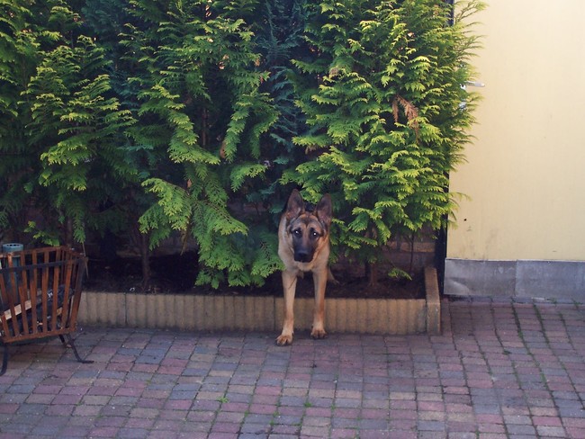 Honden foto's > Wilma > eigenlijk mag ik niet tussen de boompies