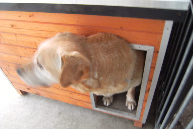 Honden foto's > imke steevens > Waar? Moet ik er uit komen? Is daar een hond? bezoek? koekje? Niets?
