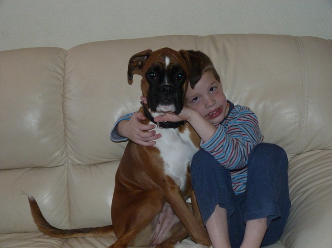 Honden foto's > Mirella en 24 hondenpootjes > mn zoontje met fleur