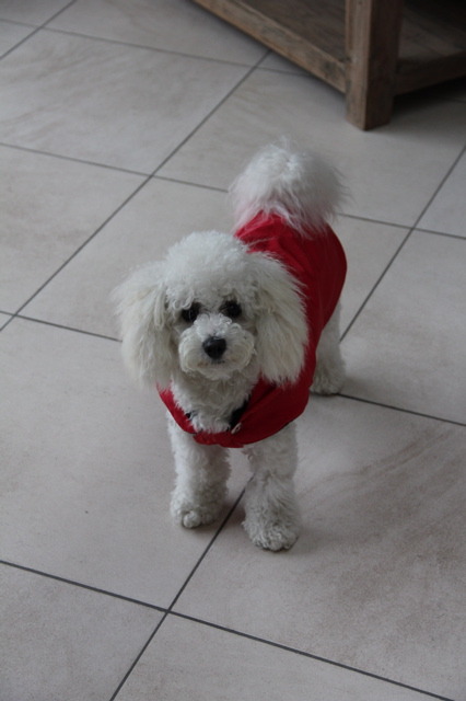 Honden foto's > bibiane > hoera ik kreeg een jasje van de sint!!