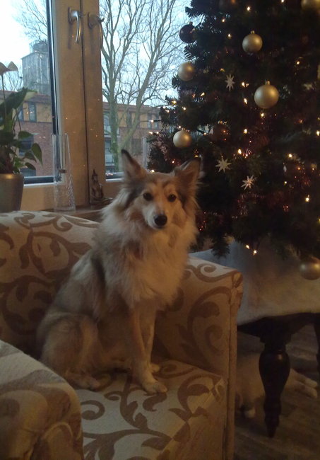 Honden foto's > Sandra en Fleurtje > gezellig bij de kerstboom
