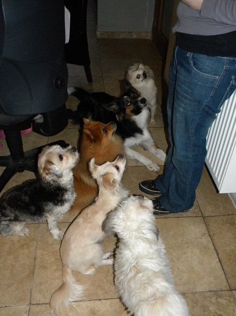 > Blanche, Spot, Pommeke, Taiko, Romi & Dempsey. Wie de koekjes vast heeft is de leider van het roedel :D