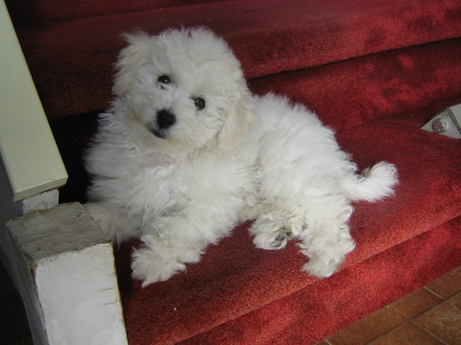 Honden foto's > monique > Op de trap liggen is gewoon lekker hoor.