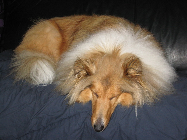 Honden foto's > Liesbeth > Tara had het zwaar met oud- en nieuw 2011/12. (24 uur niet geplast door de knallen)