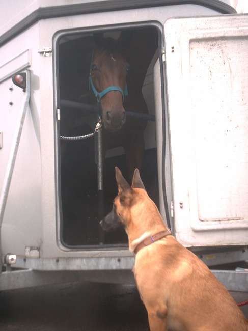 Honden foto's > Tosca > Pebbel mee op paardenconcours