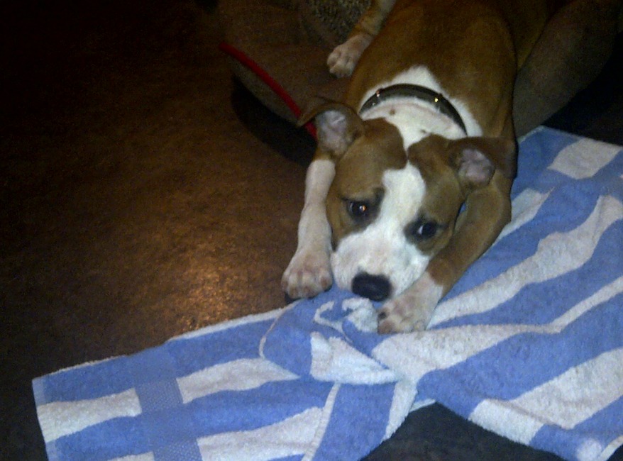 Honden foto's > jamar en Tyra > dit dacht tyra toen: ooh.. wat ben ik moe!