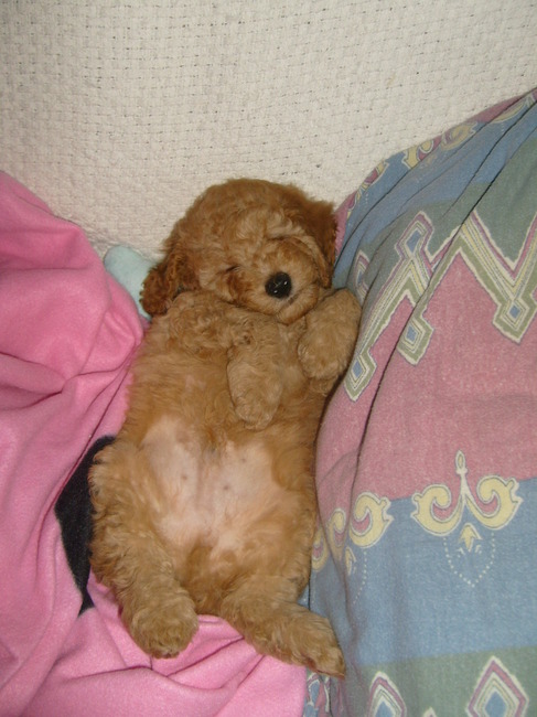 Honden foto's > Bianca Jacy en San > op de rug slapen doet hij het liefst :)