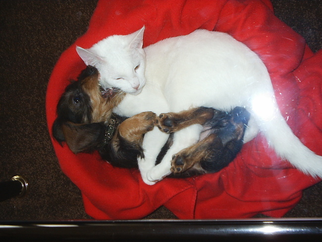 Honden foto's > Grace > Net 3 maandjes met d'r grote kater vriendje