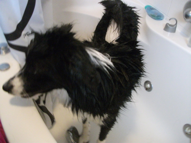 woody in de douche van silke & woody