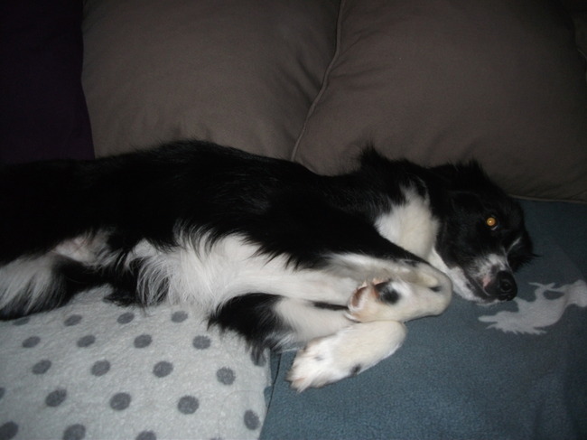Honden foto's > silke & woody > pech!!!ik lig hier al