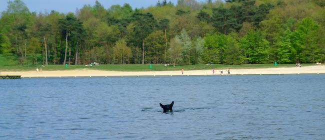 Honden foto's > berry > Laika zwemmen bij het Heerderstrand (5maand)