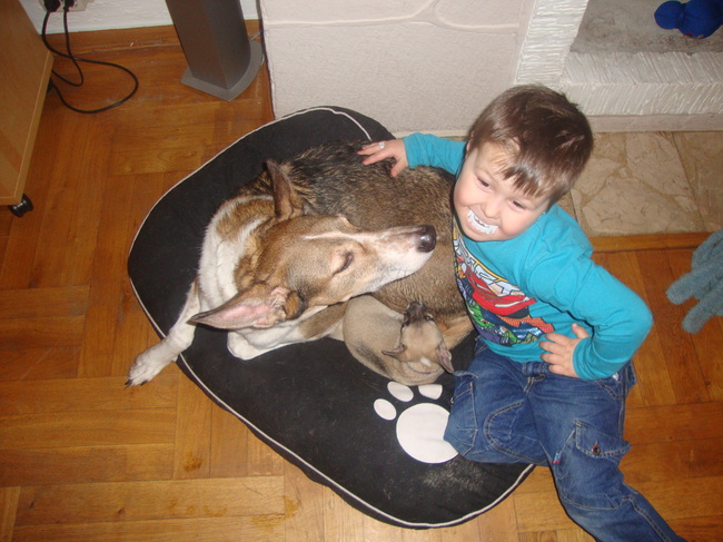 Honden foto's > Donna en Basje > de doggies,samen met mijn kleine vampier hihi